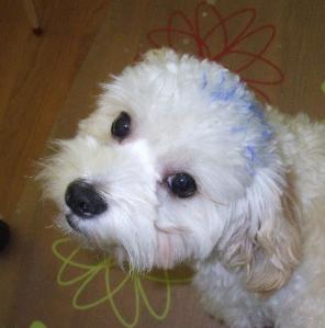 Babysitting my friend’s dog. His name is Bailey and wanted to see what I was painting. Poor Bailey Blue, isn’t he cute though? He has beautiful eyes, like the singer Björk, I think.