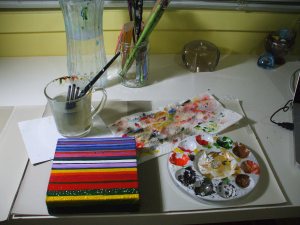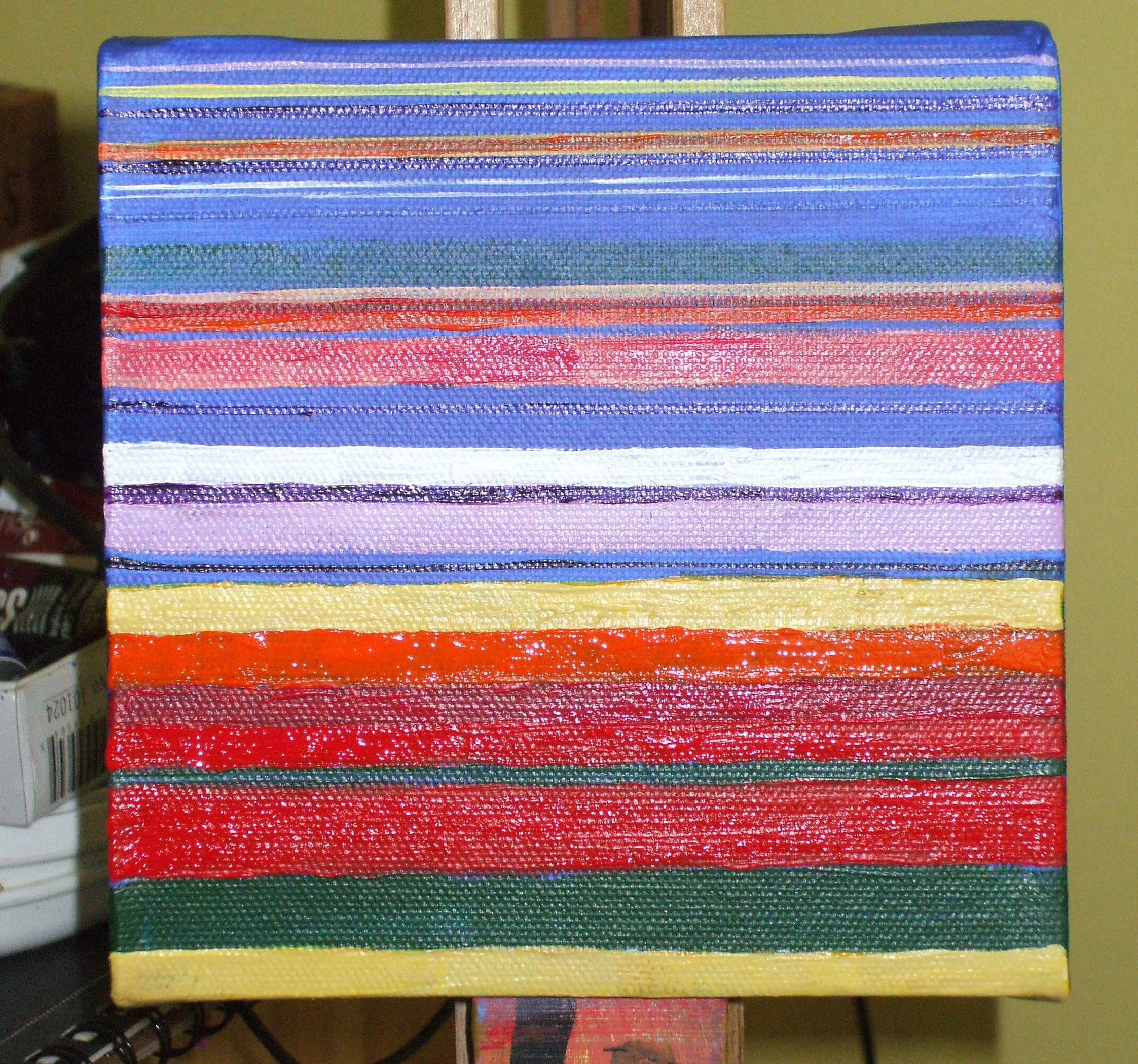 Turns out that this is the fiddliest painting ever! Looks so simple – a few stripes on a canvas. Am I right? Oi Veh!