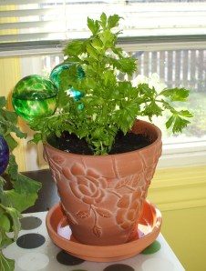 Anyway… It is easy and it works. I have not clipped and used any yet but I will be toting it with me to Tiny House Ontario so that when it is a little bigger I can eat some of this lovely plant, and also because my husband is a plant killer. Just cut one or two off from the outside and let it keep on growing. I wonder how long it will last?