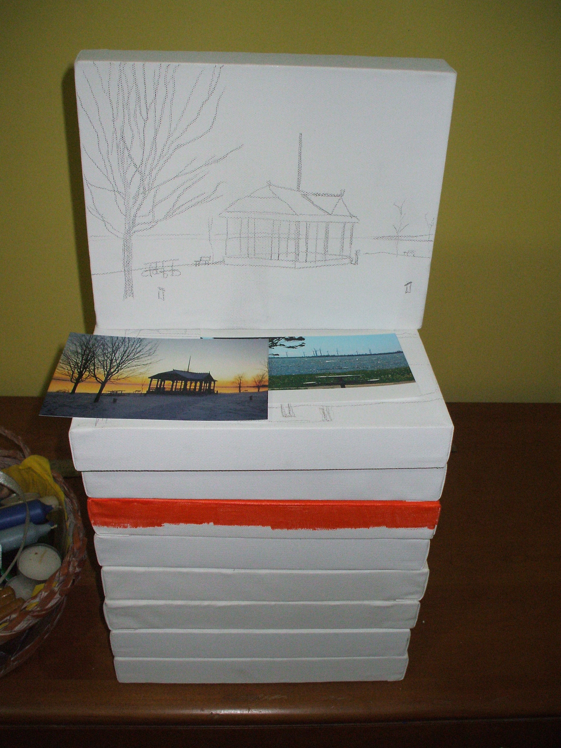 Stack of canvases to pack