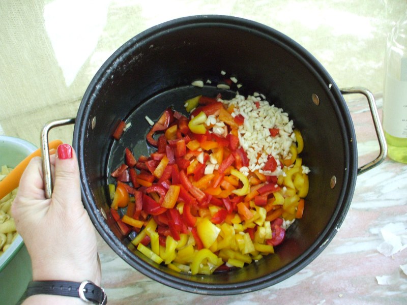 peppers and garlic to saute