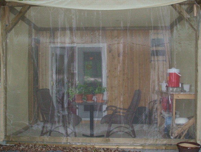 It makes the cloth porch feel a lot more like a room and a lot less like an after thought. Here is what it looks like when you look in from the South