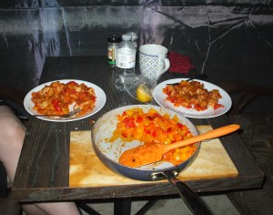 So… the problem is that I still have ingredients for a meal for four hungry people. Having grown up on a farm, I always find that I over prepare food. This over preparation, always thinking if there are no left overs that people did not get enough to eat, caused a funny situation in my marriage for the first few months. I would cook big meals and my husband who grew up in a culture where leaving left overs is not acceptable… caused confusion.