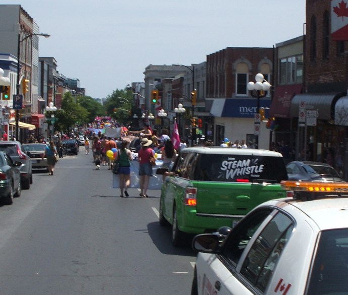 Yesterday, I was one of the marshals at Kingston Pride Parade.  It was a great day.  I took up the end behind the police car to be sure that everyone got through the intersections before the cars could continue on with their day.