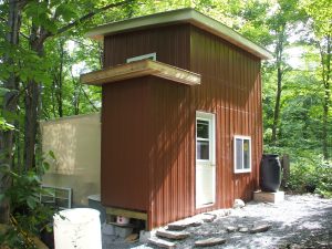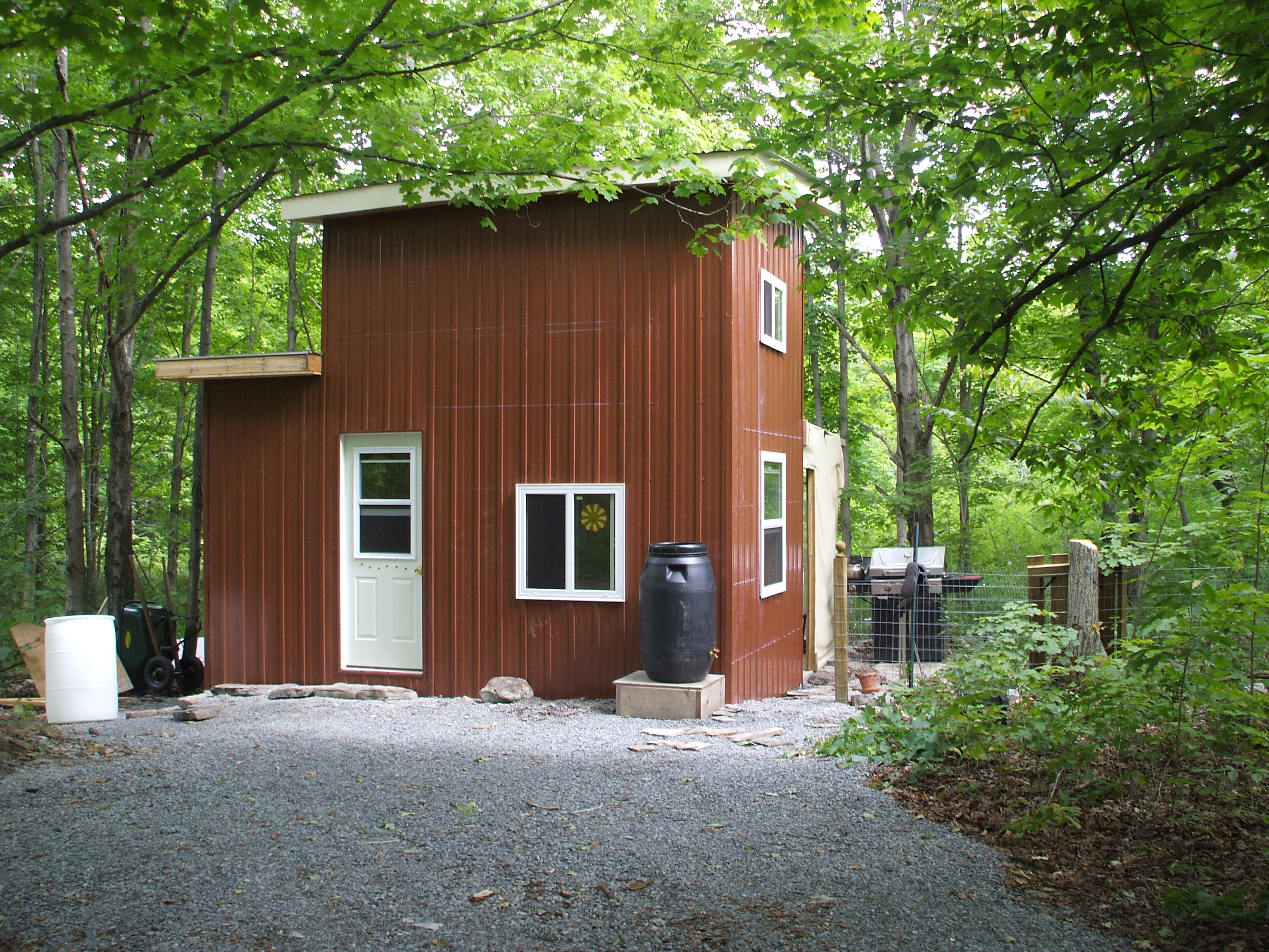After the men left, I took a photo, as you can see Tiny House Ontario is brown and lovely like a big brick of Cadbury chocolate, perhaps I should paint candy canes on the corner and have my chainsaw artist friend Steven Kenzora (from Peterborough) carve me some large gumdrops for corner cornices so it looks a little like the witch’s house in the famous German fairy tale?