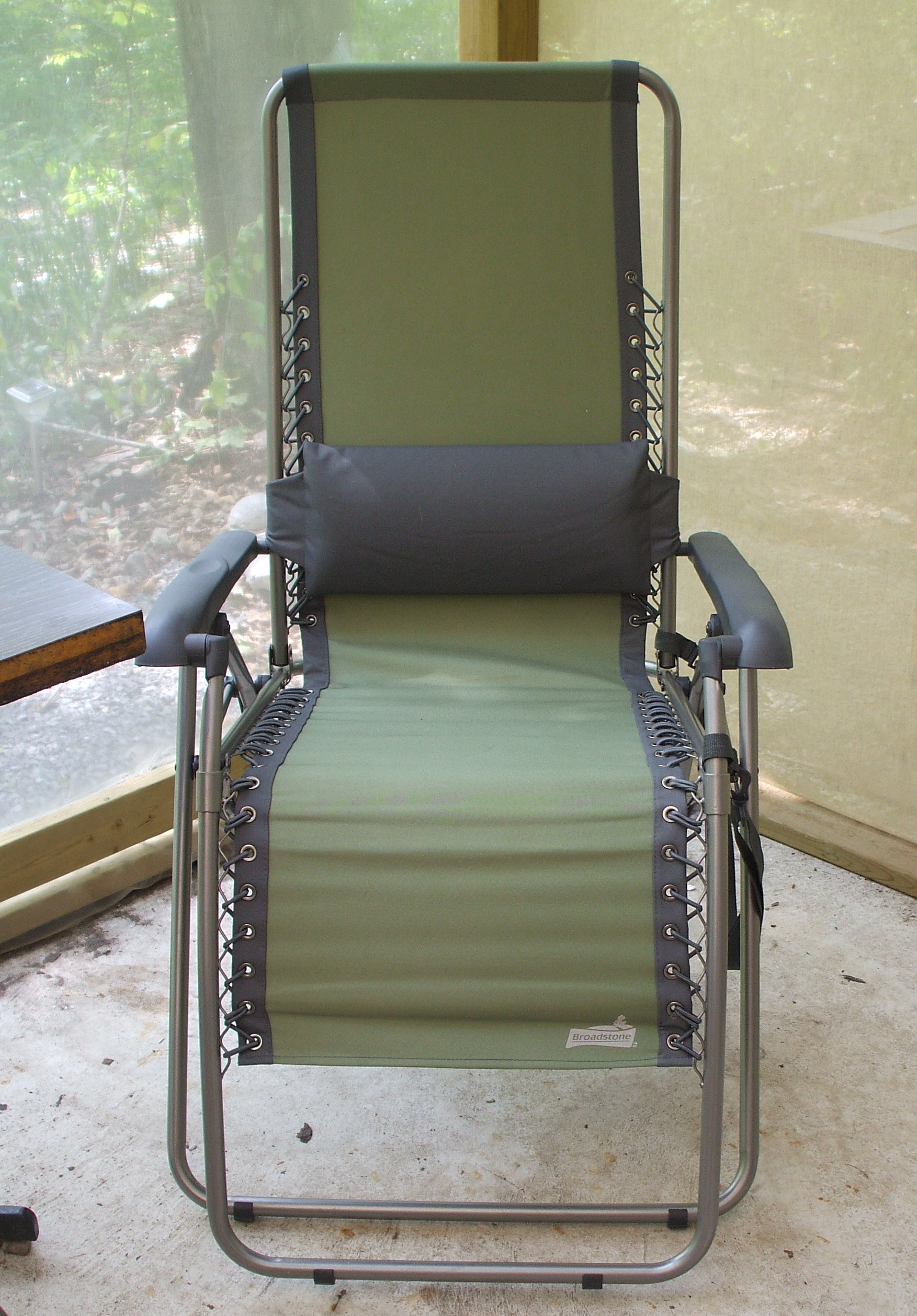 I mentioned this to my husband and magically he had a solution. A zero gravity chair. $50 (at Canadian Tire) I believe, he said.