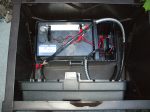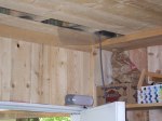 For the past three days Hj and I have been busy installing the 12 volt lighting and power system at Tiny House Ontario.  Like a lot of work that I do at THO, it is a longer task than I had expected it to be.  This is due to two reasons.  First, I have to be very careful when removing the wooden walls so that I don’t split or spoil any of the boards, which worked out perfect so far.  Second my drill is old and not very powerful so drilling through the joists is not a fast thing to do.
