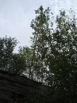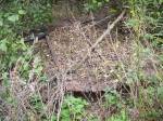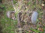 I won’t share where it is unless you are family and want to know, but I will share that it is a bit of an odyssey to get there. When we arrived there was just one stone visible and a little marker that says J McC. Sandy remembered that there were more and had a trowel so we checked under the moss and found that there were a number of bits. Here is what we found of our ancestors headstones as well as the ruins from the original house, well, barns, outbuildings.