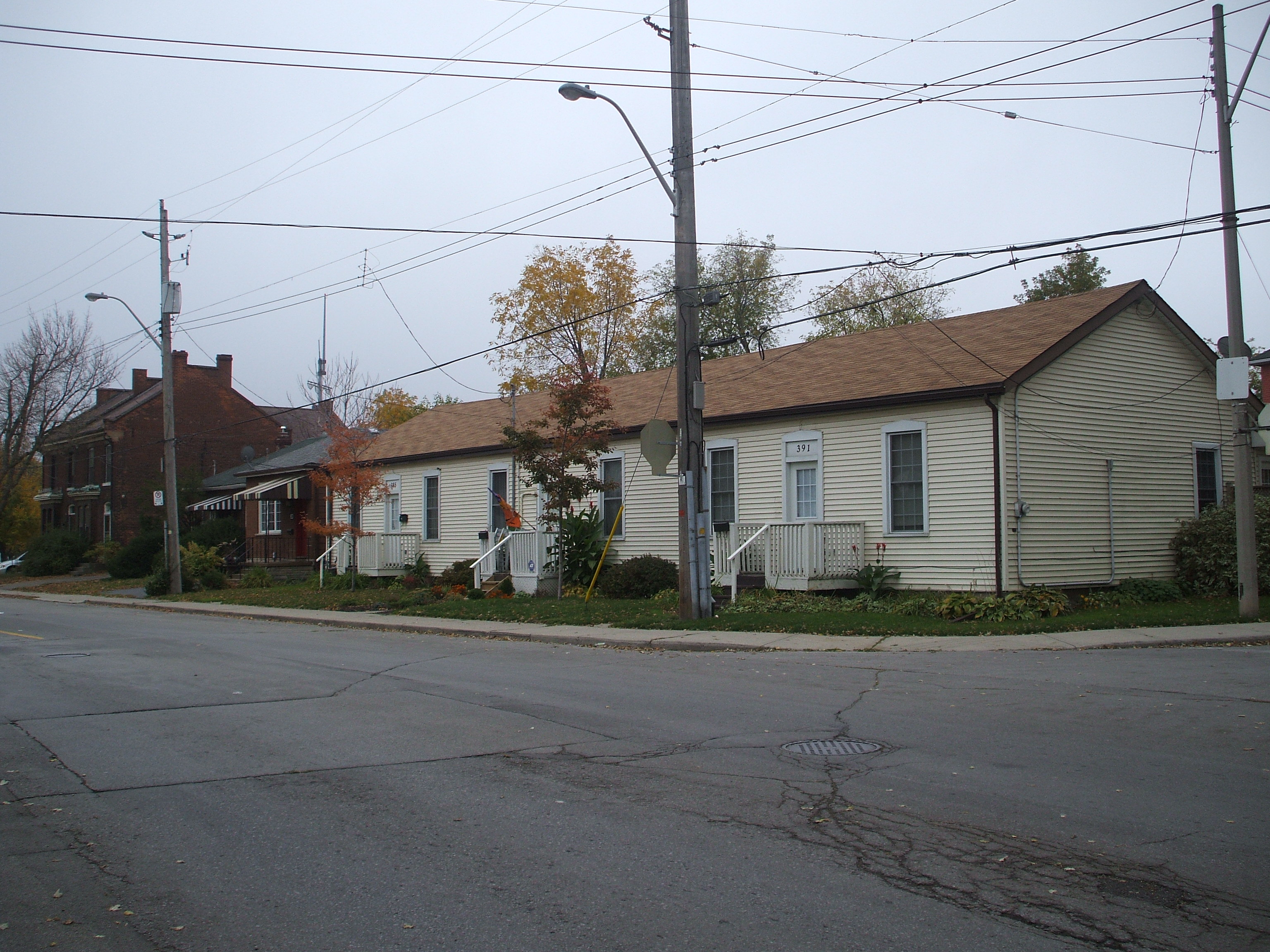 small triplex with two small single family homes behind