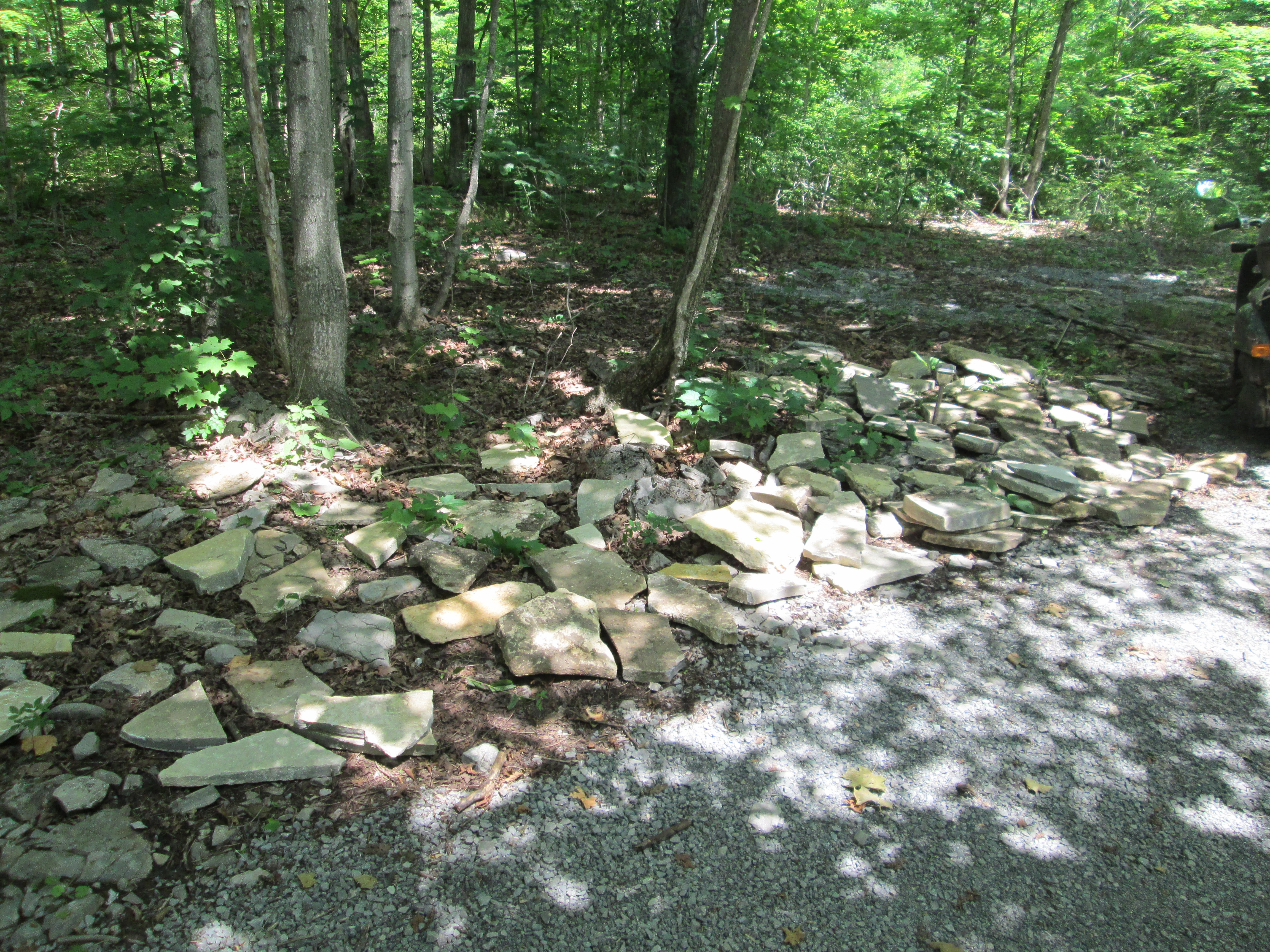 At THO there is now enough stone to finish the patio as well as the path down the West side of the house.  There is more than I need this year as well.  I am planning on 3 or four more trips to the quarry to get all the stone I need to finish the planned work for next year too.  This is because my brother in law is retiring his truck at the end of this month, so getting all the stone now is sensible and inexpensive.  Grandma used to call this sort of planning “a stitch in time”, you may already know the adage.