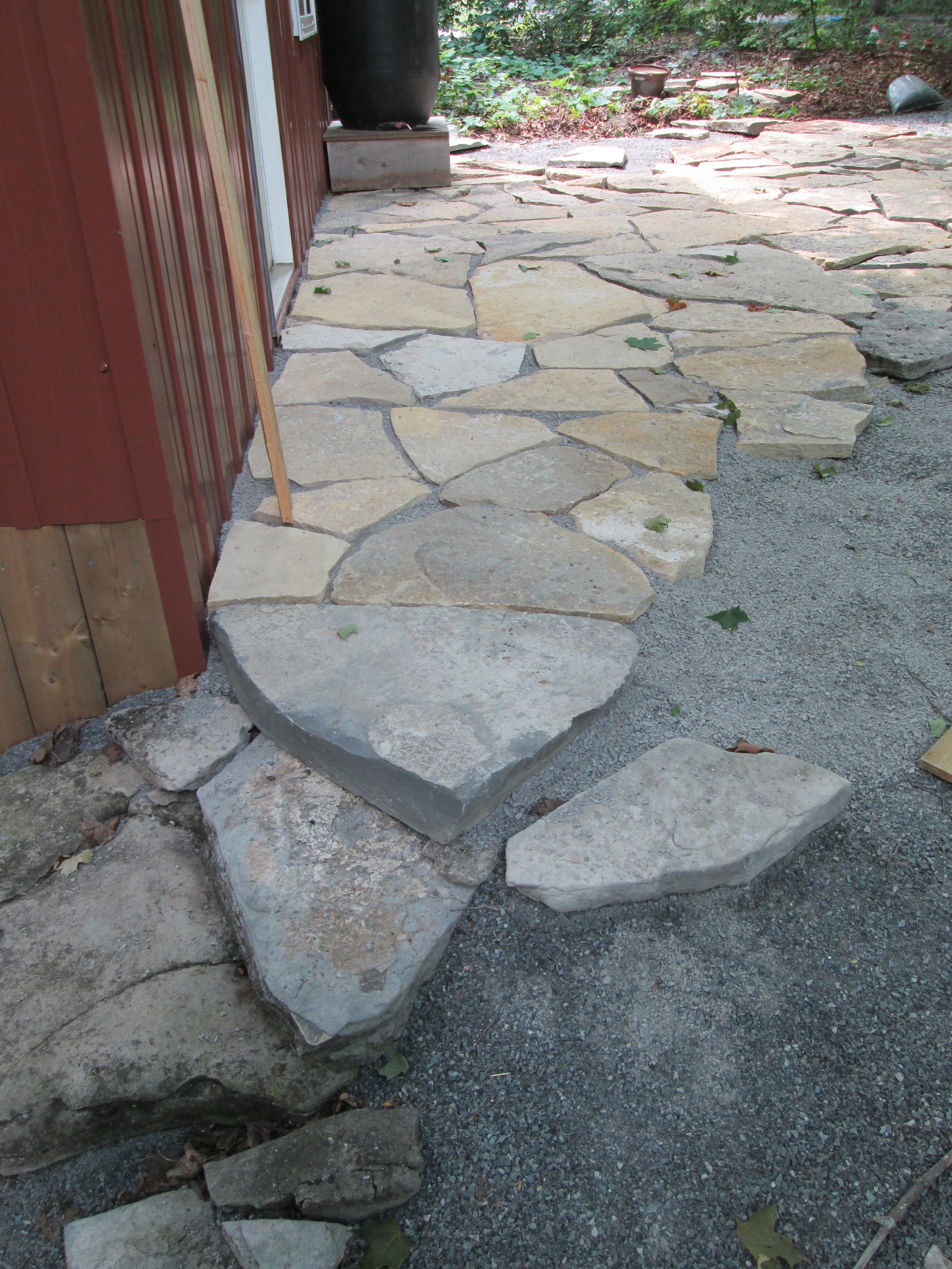 most of the stone is laid for the planned patio.