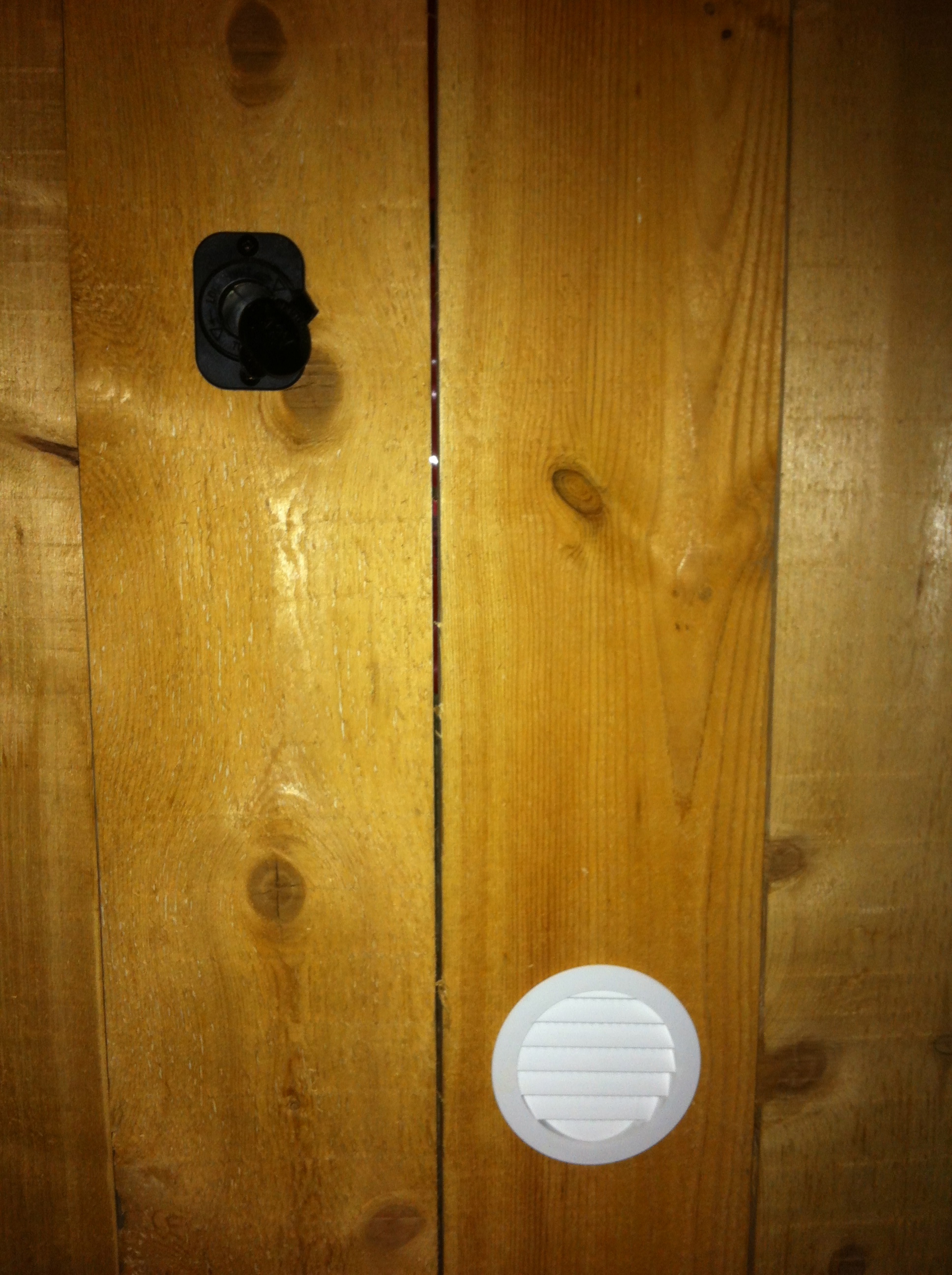 G caulking the cracks Here is the exterior infrastructure!  Adjusting the screws Laura hanging on the roof doing nothing Ready for Plexiglass Matt paint Viking in contemporary drag G adjusting Guillaume doing my work for me A HOLE IN THE WALL!!!!  EEEEK! Resuming with the box up! Vent near outlet Hj Fixing my wiring Cut wires and curse words Waiting after the injury