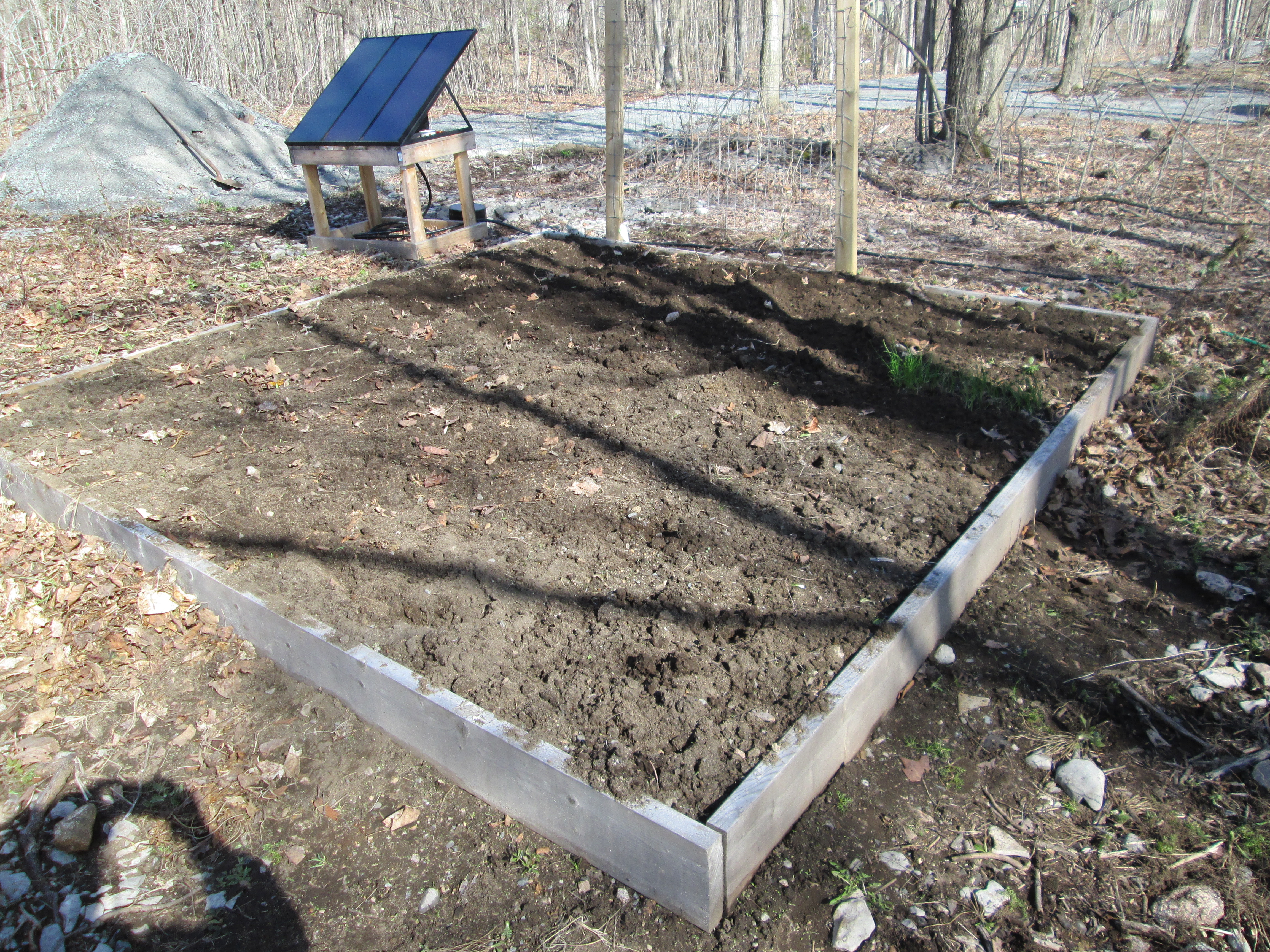 The porcupine, I guess needed to relax after such a burst of commotion, so s/he stayed in the fenced area for about half an hour and then finally scaled up the fence and continued up one of the maple trees. After s/he climbed up Dieter was brought out to go to the bathroom… ON A LEASH, this time. He really did have to go to the bathroom but quickly did his business without further incident and came back in.