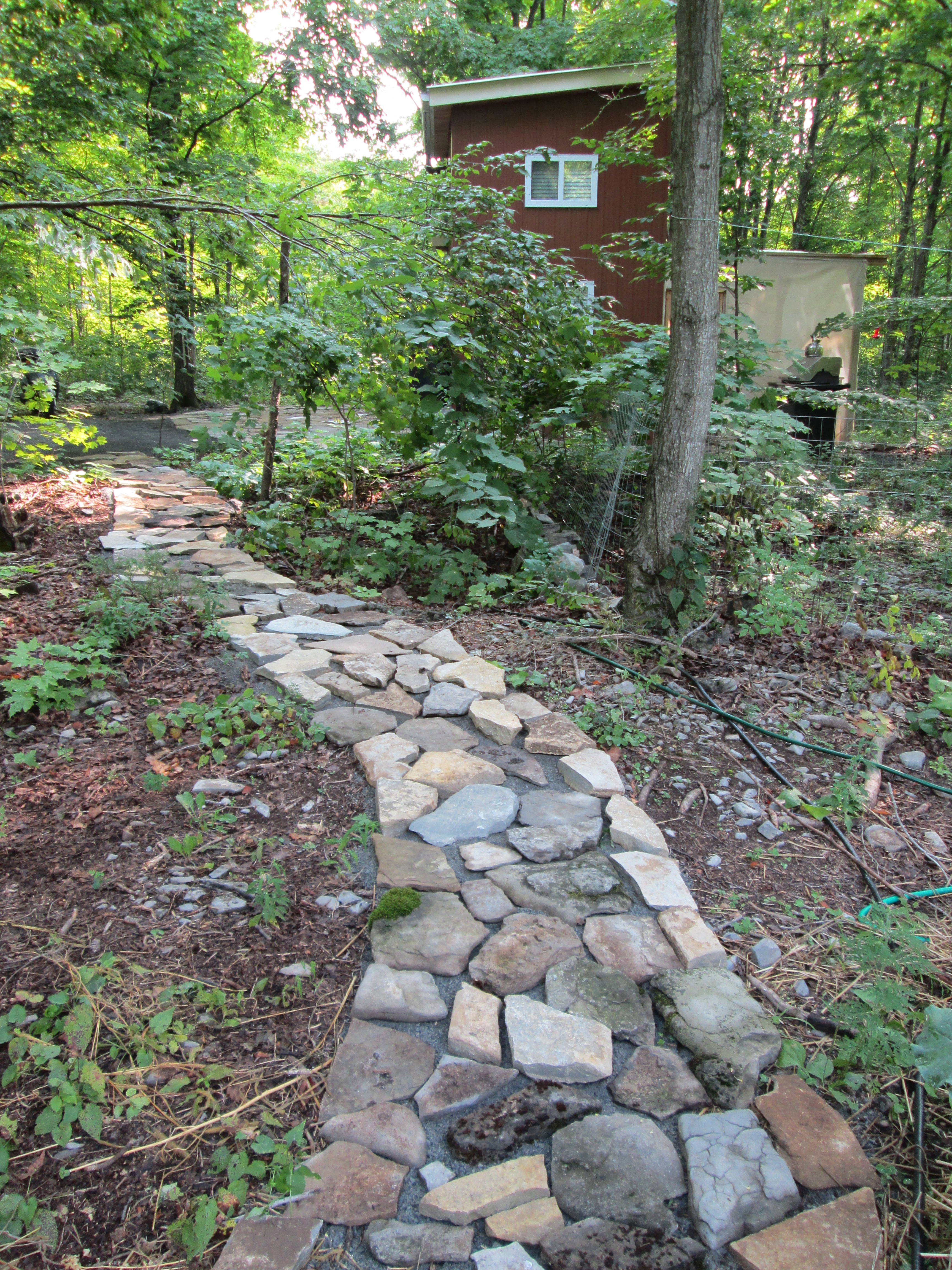 I laid out the stone to measure it for the garden path. It turns out that I have enough stone to take care of the plan. It is not good to walk on. This is actually a job for next spring so I did not yet prepare the job properly, I just wanted to measure before the truck dissolves. The stone dust I laid will have to settle then every stone will have to be removed and levelled to its neighbour. Because it is away from the house, I am not too worried about the drainage. Basically it is just a footpath to the vegetable garden.