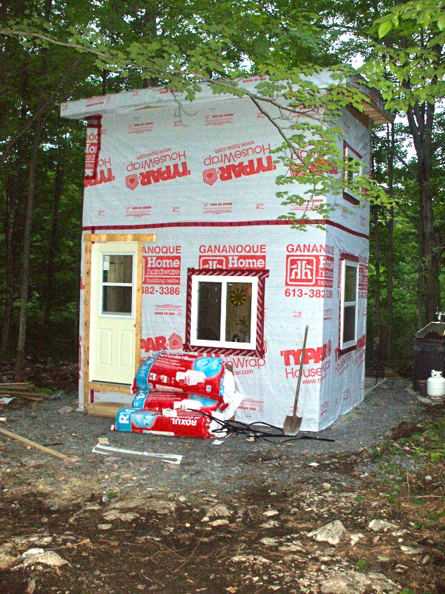 It got me thinking about my insulation. Unlike a lot of tiny house builders, I chose mineral insulation. I used R15 for my walls and R45 for the roof. Tiny House Ontario heats easily and stays reasonably cool in the day as well, but this is not just because of the insulation. Due to the fact that I took into account the location of the house on the planet, it is situated to get optimal sun in the winter and as little sun as possible in the summer. The large maples around the house really help with this. Because my house is in Ontario, I would have loved to use R45 for the walls too, but I did not want to lose the interior size to the walls. This was a concern only because I had to keep the footprint of the house under 108 square feet due to building code restrictions.