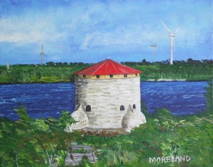 With the towering windmills behind the tower in this painting, the name Kingston’s Wars seemed to me to be appropriate. Kingston has new really seen any war but for any of you who are not local and reading this, the construction of these wind turbines caused many hard feelings and disagreement between neighbours. Now with them present, land values in question and still feelings running high, one wonders if the healing of this generation of islanders, will happen.