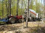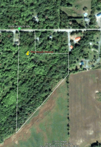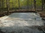 I know that cement is not exactly the most environmentally friendly material. Still, I am planning on actually keeping this house standing for a good many years, so, I decided on an 11’10” by 8′ cement pad to build on. I also put in an adjacent one of the same size in as so that I would have an exterior space to hang out on too, where my feet would not get dirty and I could wash my dishes. There were multiple issues that came up during this. Issues that I would prefer not to discuss because I am building in a small community – but I will say that this part of the job was annoying and cost me well over double what it should have. The concrete was $835 delivered and my awesome cousin Kenny dug me the hole in order to bring the ground down to the bedrock. This cement pad is NEVER moving! Well drained and I really appreciated having Kenny’s expertise on the land there! Kenny was also there when the cement truck came and used his bucket to bring the cement in through the woods.