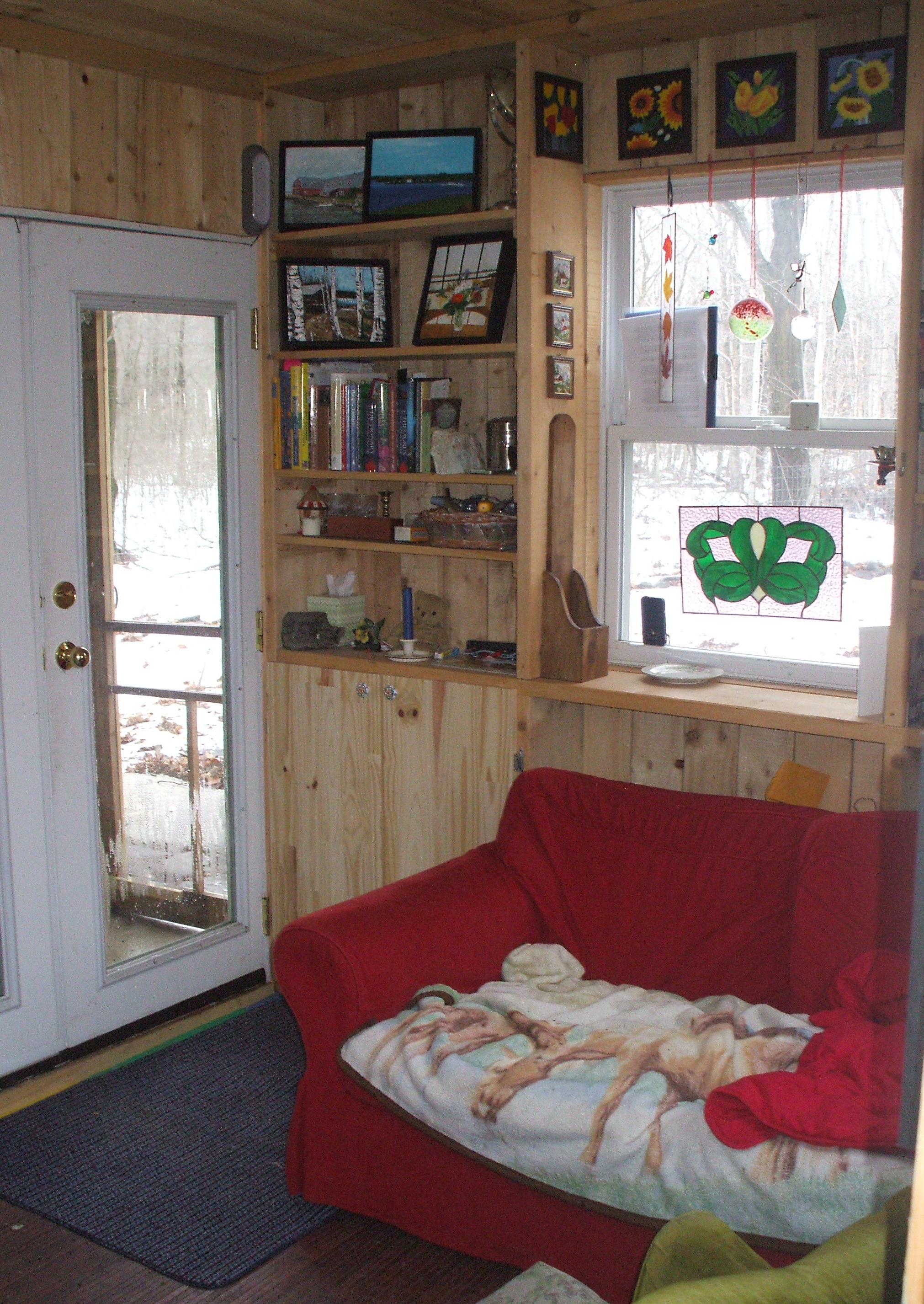 There are lots of tracks out there in the forest. The little arrows of wild turkeys, our own tracks, coyote/wolf/dog tracks, the little tracks that look like human babies but are really racoons and another long fingered critter perhaps the dreaded fisher. On our walk about we also found a few holes which may belong to weasels. Sadly too, it looks like one of our paper wasp colonies died this winter. Their entire hive was shredded and opened.